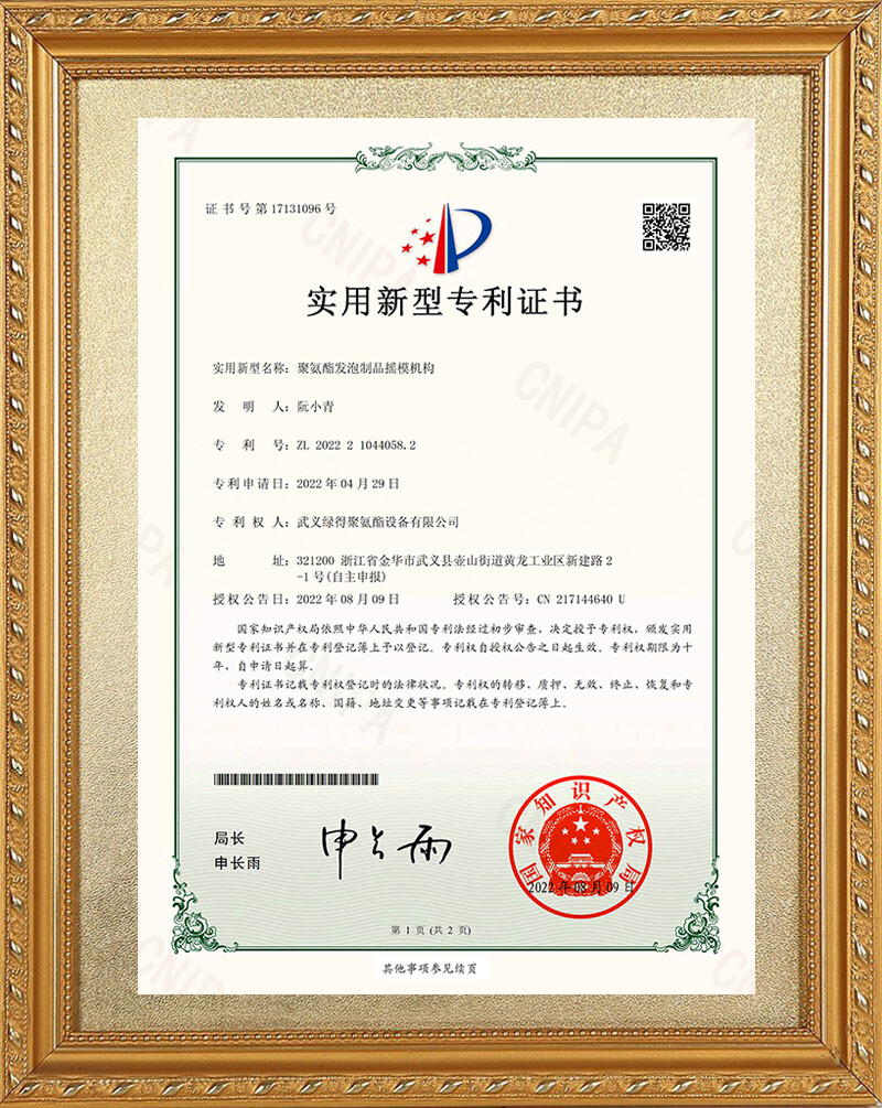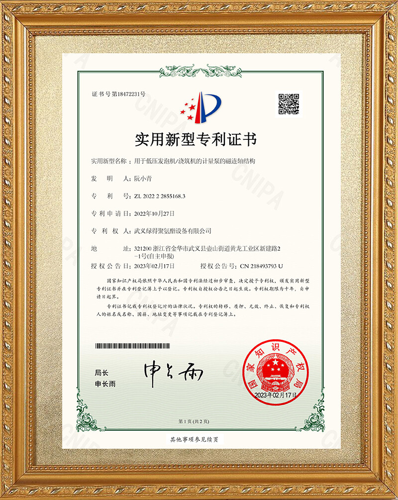 武義綠得聚氨酯設(shè)備有限公司的專利覆蓋了多個(gè)領(lǐng)域,體現(xiàn)了公司在聚氨酯設(shè)備制造方面的專業(yè)技術(shù),也顯示了其在行業(yè)內(nèi)的創(chuàng)新和發(fā)展能力。通過(guò)這些專利,公司能夠提供更加多樣化和專業(yè)化的設(shè)備,滿足不同客戶的需求,并保持在競(jìng)爭(zhēng)激烈的市場(chǎng)中的領(lǐng)先地位。